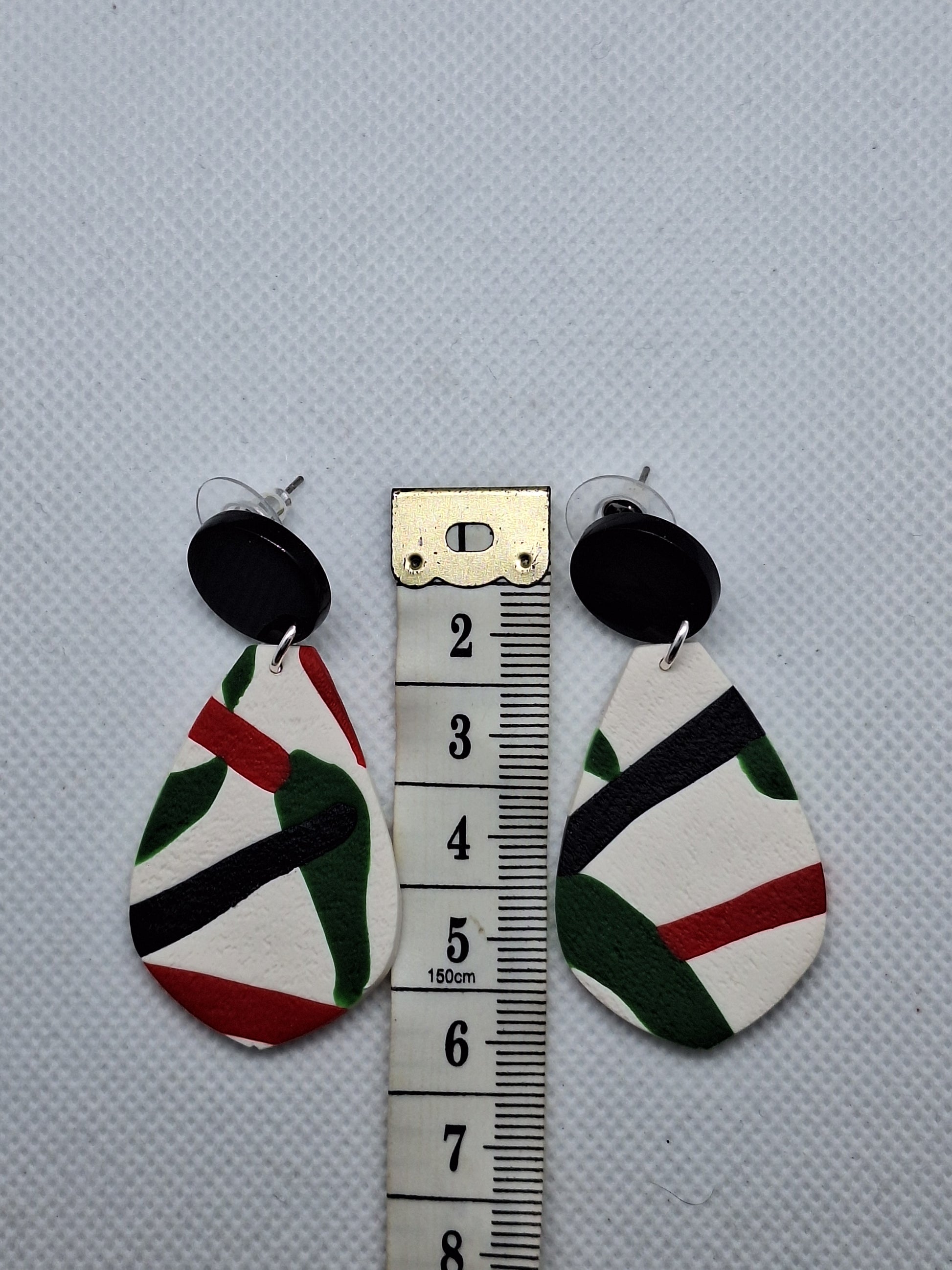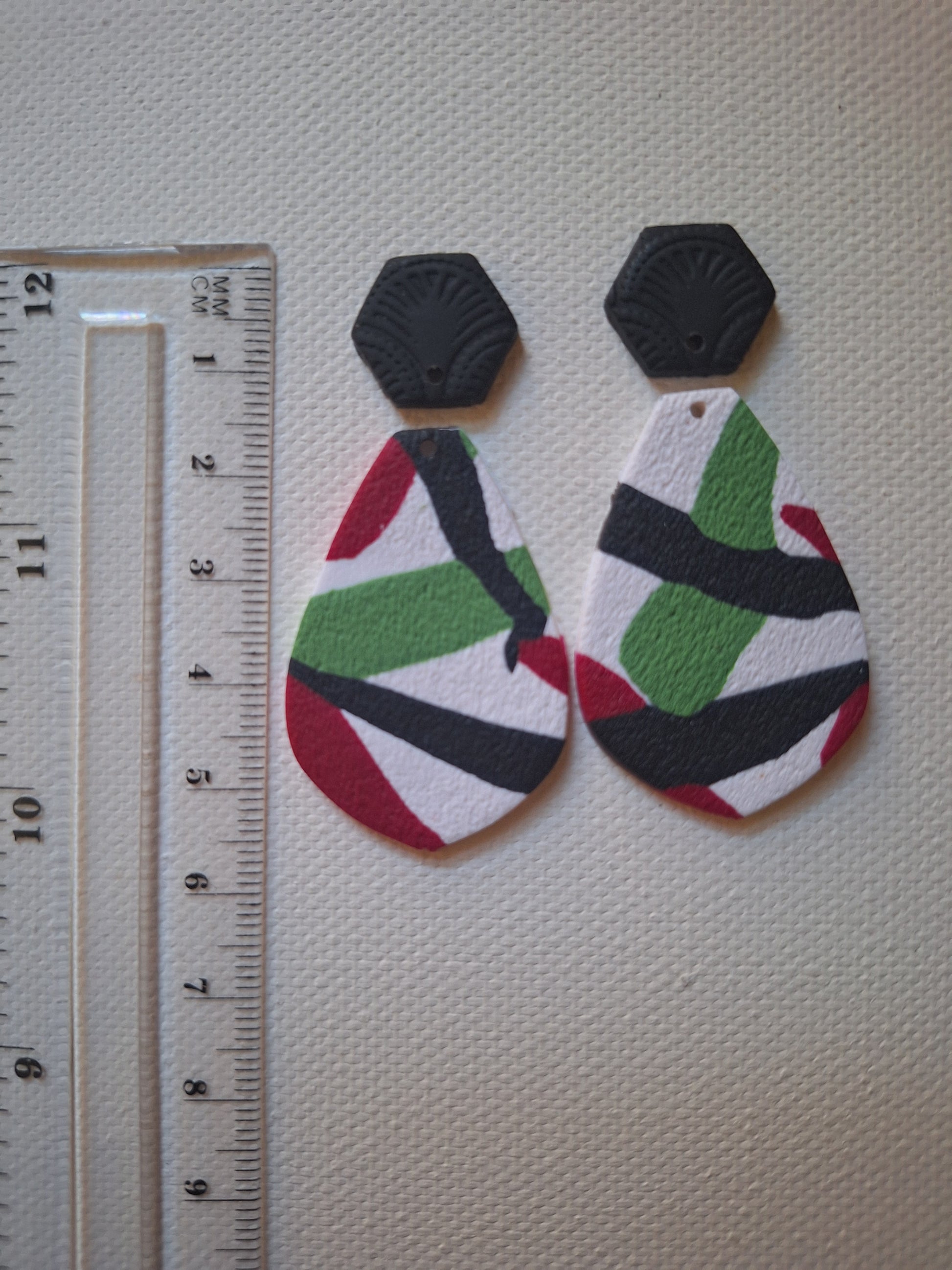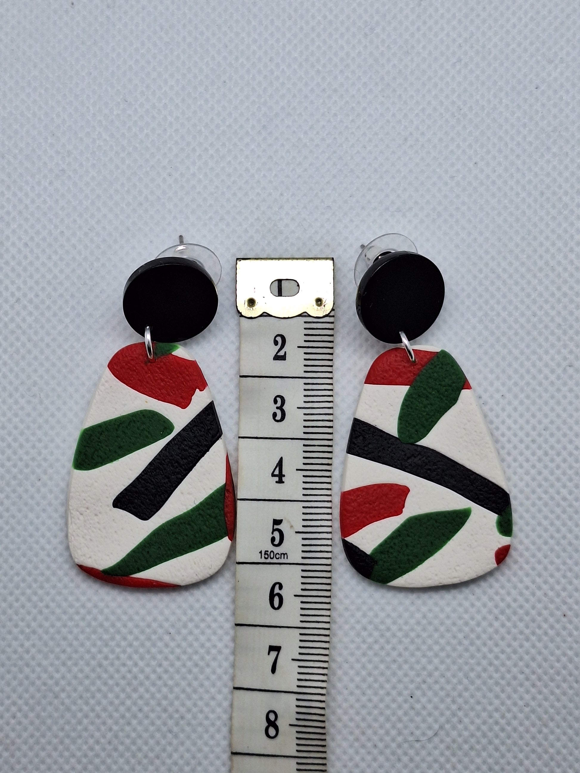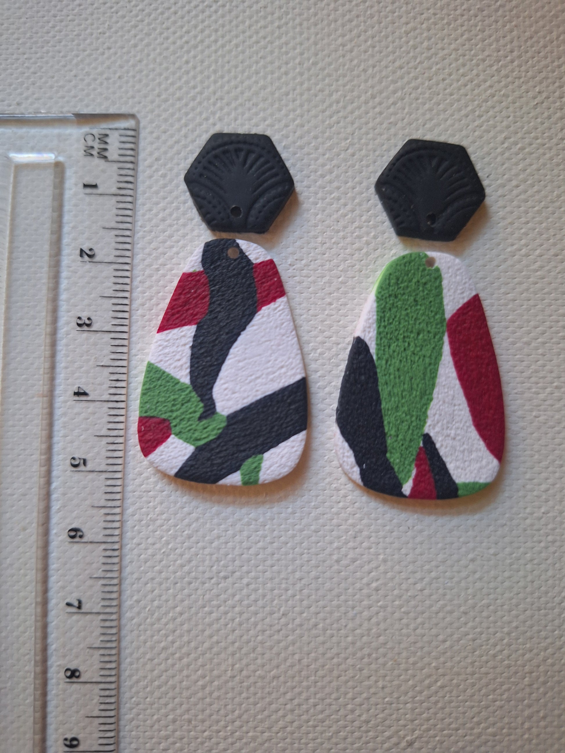 Farah is named after a 19 year old artist we know in Gaza who is trying to provide for her elderly parents, her sister and her small nephew and niece. Farah is a talented artist who was looking forward to going to university this year. Farah is modern and abstract and comes in three different shapes. Sculpey polymer clay with stainless steel earring posts.